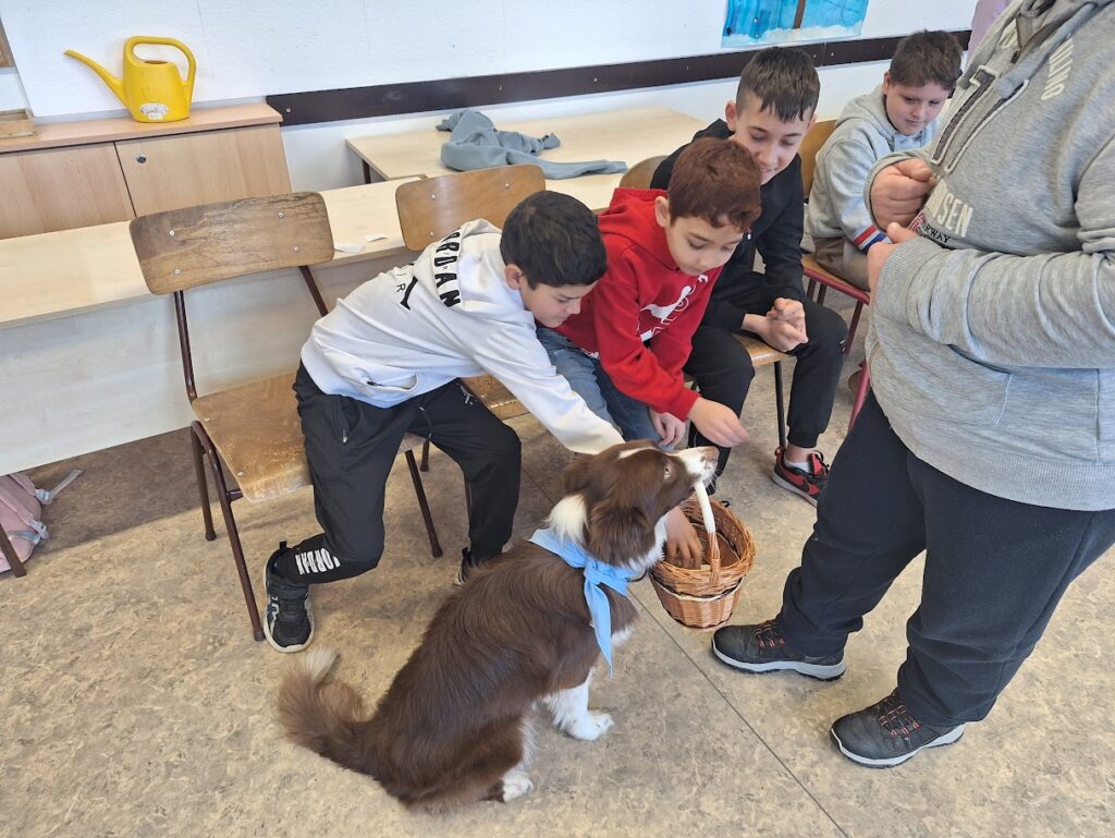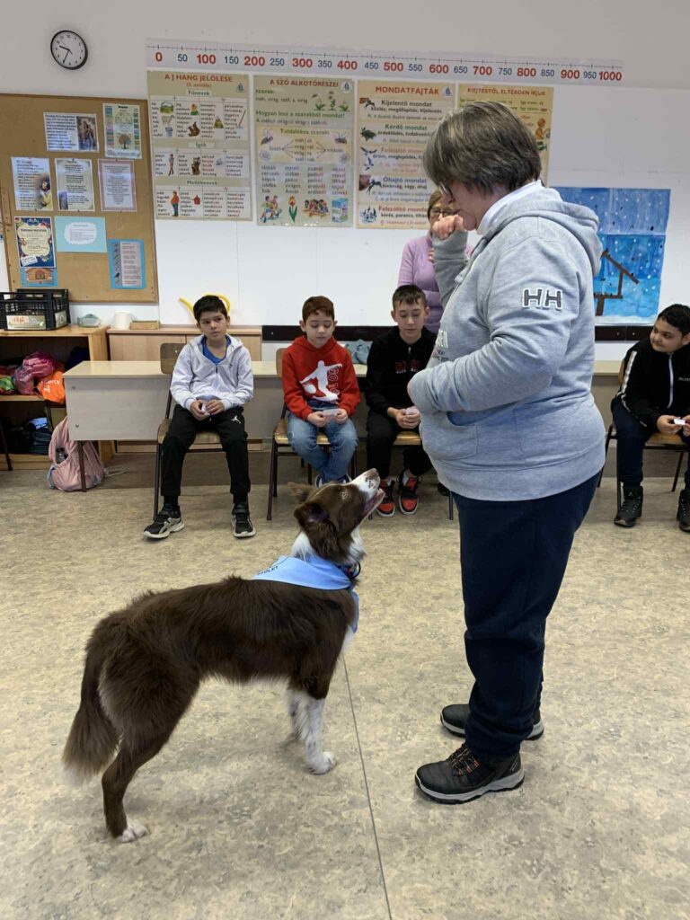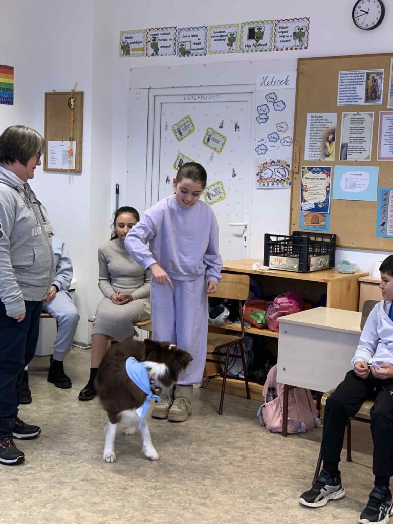 2026.02.25.Képzett, vizsgázott terápiás kutya szerzett nagy örömöt iskolánk tanulóinál.
