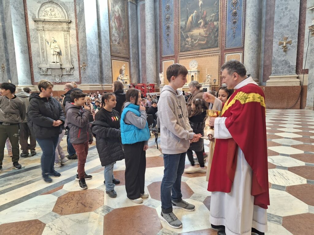 Minden év március 4-én Meszlényi Napot tartunk az iskolánkban. A délelőtt a vetélkedők, emlékezés, előadások, pályázatok jegyében teleit, majd az Esztergomi Bazilikában szentmisével és koszorúzással zárjuk a napot. Idén (ahogy mindig) Főtisztelendő Gyetván Gábor Atya (EKIF főigazgató) celebrálta a misét. A misén díszvendég volt Oláh Gábor (EKIF tanulmányi igazgató) és Dóra Zoltán (EKIF tan,ig.h.). További vendégeink voltak és együtt imádkoztunk az Esztergomi Korona Integrált Szociális Intézmény lakóival és vezetőikkel. A szentmise után ünnepi koncertet adott a Glatz Gyula Idősek Klubja Énekkar és a szép Zenekar.